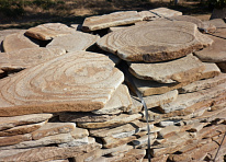 Шлифование дает равномерно шероховатую поверхность. При этом глубина неровностей не превышает 0,5 мм. Такими плиты можно укладывать на пол и на ступени — они не будут скользить. Нескользящую поверхность получают также при пескоструйной обработке и бучардировании. Колотая фактура передает естественную красоту колотого разлома. Если у камня есть рисунок, то на такой поверхности он будет не очень заметен. Галтованный камень отличается гладкой, слегка бархатистой поверхностью. Его края сглажены и напоминают обкатанную морскими волнами гальку. Искусственно состаренная поверхность (патинирование) получается во время обработки специальными щетками с абразивом. Такой прием подойдет для мрамора и травертина.