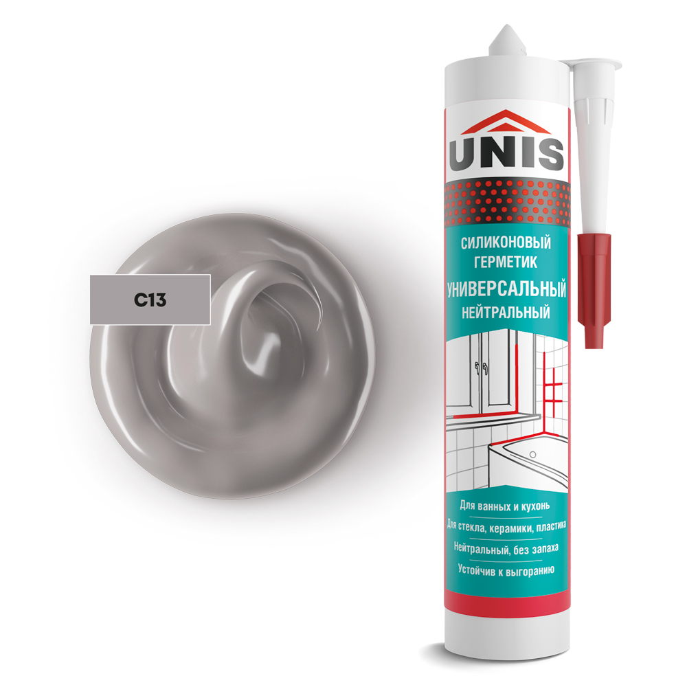 Герметик Unis из коллекции UN используется для герметизации стыковых и подвижных швов практически на любых пористых и непористых основаниях. Он выпускается в объеме 300мл и имеет серый цвет. У него высокая устойчивость к УФ-лучам и нет явного запаха.