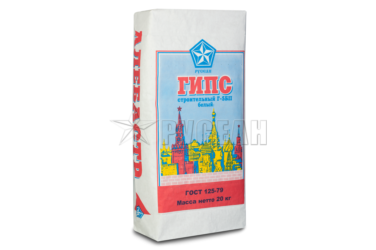 Гипс Русеан Алебастр производится в России и подходит для внутренних работ. Это один из самых востребованных строительных материалов, который применяется для декоративной отделки стен и потолков, для производства гипсокартона, штукатурок, наливных полов. Гипс Русеан из летняя серии имеет серый цвет и высокую прочность на сжатие — 49 МПа. Выпускается в виде мешков 20 кг.