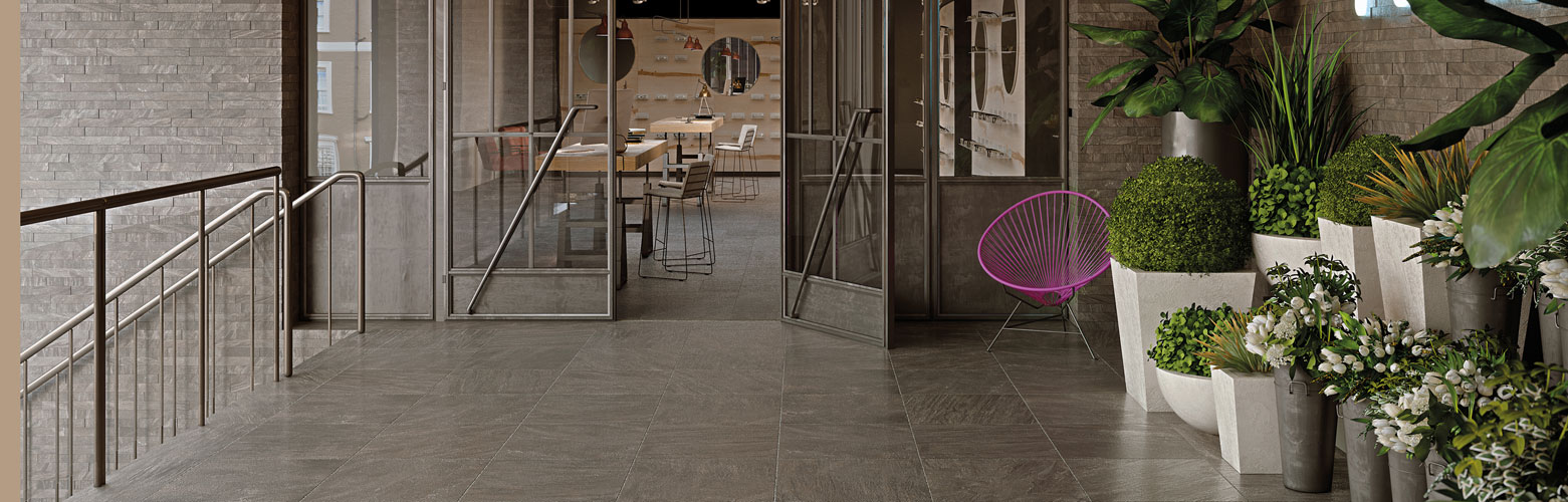 Утолщенный керамогранит Italon из коллекции Climb X2 применяется для облицовки цоколя, в качестве напольного покрытия на улице, в том числе на парковках, для эксплуатируемой кровли, в зоне бассейна. Он не впитывает влагу, не подвержен образованию плесени и мха, а его матовая поверхность имеет антискользящее покрытие, которое позволяет безопасно передвигаться даже в дождь. Высокую прочность материала обеспечивает его увеличенная толщина — 20 мм, а удобный размер 600х600 мм позволяет воплотить любую дизайнерскую задумку. Керамогранит в цвете Rock имитирует камень и подходит для применения в любых стилях.