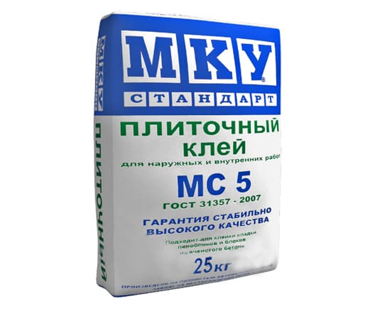 Клей для плитки МКУ (Мансуровское карьероуправление) Стандарт предназначен для работ при температуре . У него небольшой расход 2 кг/м2. Готовый раствор рекомендуется использовать в течение 180 минут.