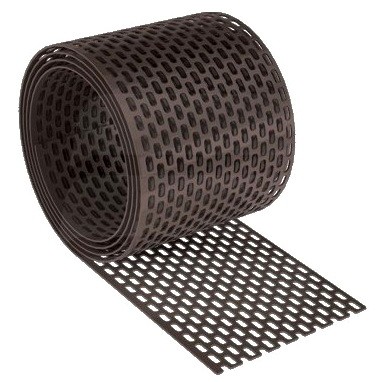 Вентиляционная лента Braas в коричневом цвете — рулонный перфорированный материал из поливинилхлорида. Применяется для устройства вентиляции кровельного пространства — механически крепится к обрешетке и контробрешетке.