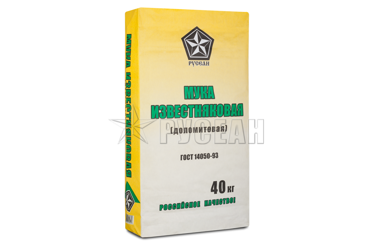 Мука Известняковая Русеан изготавливается в России и фасуется в мешок 40кг. Смесь из летней серии имеет белый цвет и подходит для внутренних работ. Ее добавляют в строительные растворы для увеличения их эластичности.