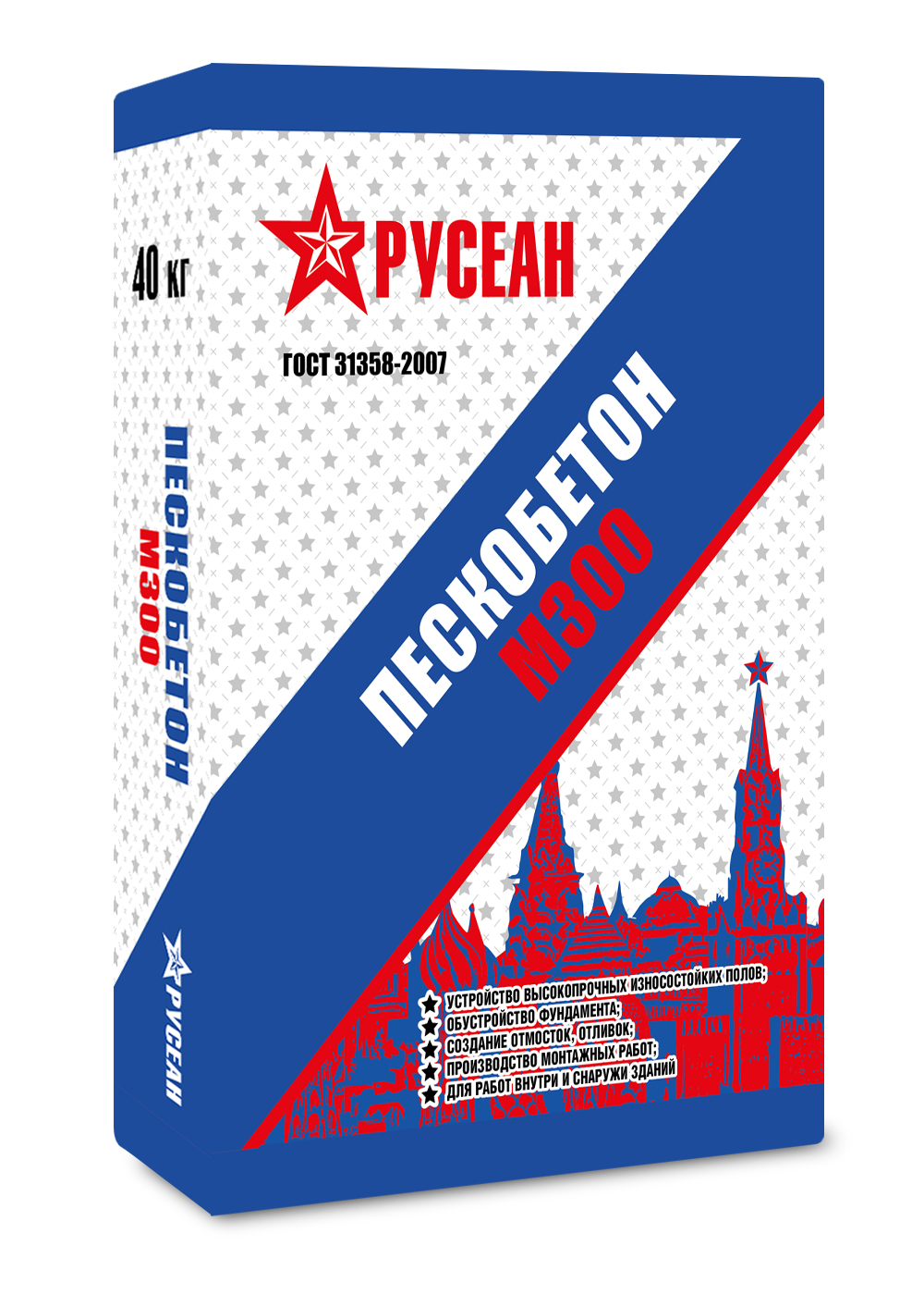 Пескобетон Русеан Пескобетон изготавливается в России и широко применяется в строительстве. За счет цементной основы и модифицированного состава смесь имеет повышенную прочность и морозостойкость FF50, подходит для внутренних и наружных работ. Она имеет серый цвет и фасуется в мешок 40кг. После затворения водой раствор жизнеспособен в течение 120 минут. Производитель рекомендует наносить его слоем от 50мм до 150мм. При этом расход смеси при тонком нанесении составит 22 (при слое 10)кг/м2. Пескобетон Русеан из летней серии быстро отвердевает и набирает прочность.