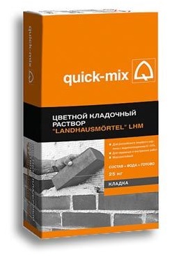 Кладочный раствор LHM серии от Quick-mix предназначен для рядовой кладки стен из кирпича. У состава из летняя серии цементная основа и первоклассные эксплуатационные характеристики: морозостойкость FF100, прочность на сжатие >7,5МПа, прочность на сцепление МПа. Раствор выпускается в мешок 25кг и имеет коричневый цвет. После затворения состав можно использовать в течение 120 минут, нанося тонким слоем от мм до мм. В этом случае расход смеси составит 53-60 кг/м2.